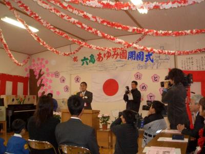 本日の開園式で2歳児1名・4歳児2名・5歳児1名の2家族計4名が入園しました。 現在、六島小学校は児童がいなくて休校中ですが、5歳児が入学する時点でまた六島小学校が復活する予定です。