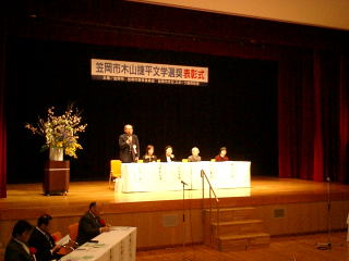 保健センター・ギャラクシーホールで笠岡市木山捷平文学選奨表彰式が開催されました。 小中学生の部の詩、一般の部の随筆・詩・短歌・俳句・川柳、短編小説、それぞれが表彰されました。 短編小説賞は紺野真美子さんの「背中の傷」で、東北と九州の方言で書かれた重苦しい過去の出来事が題材となっております。 短編小説ですので、あっという間に読み切ることができます。 こうして木山捷平の顕彰事業が今後も継続される事を願っております。