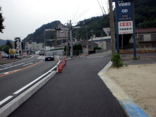 平成11年12月定例会で国道2号線の笠岡駅からアグリスポーツ公園までの歩道整備を質問して、当時の都市計画部長から「西の浜跨線橋下から笠岡公共職業安定所までの国道2号線について、建設省岡山国道工事事務所に歩道整備の要望を行う。」という答弁を戴いていたわけですが、やっとその歩道整備が形になってきました。 今までの大変狭い歩道が広くなり歩行者も安心して通行できるようになりました。